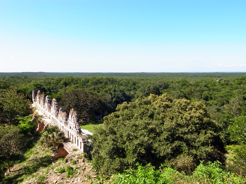 11月14日 – 不知道為什麼去南面Uxmal的Tour十分昂貴,所以決定自己坐巴士去。其實每個小時都會有車,事後覺得可能是去Uxmal旁邊的幾個小型的古蹟比較麻煩,如果自己坐巴士就很難車駁車,只可以去Uxmal,不過我們去夠了,去去比較出名的就可以了。也可能是這裡比較多有錢的美國遊客。一進Uxmal,就看到一個四方不過圓角的金字塔,可惜不能爬。接著就走到一個像是大型足球場的廣場,繼續走可以到逹一個梯級金字塔。這個可以爬啊。在頂端望出去就可看到180度的森林,這個景色就像是在Tikal頂望出去的一樣,Tikal當然更加厲害,森林是360度的。晚上吃了Yucantan的特色菜,我們還是覺得街頭的墨西哥菜好吃很多。