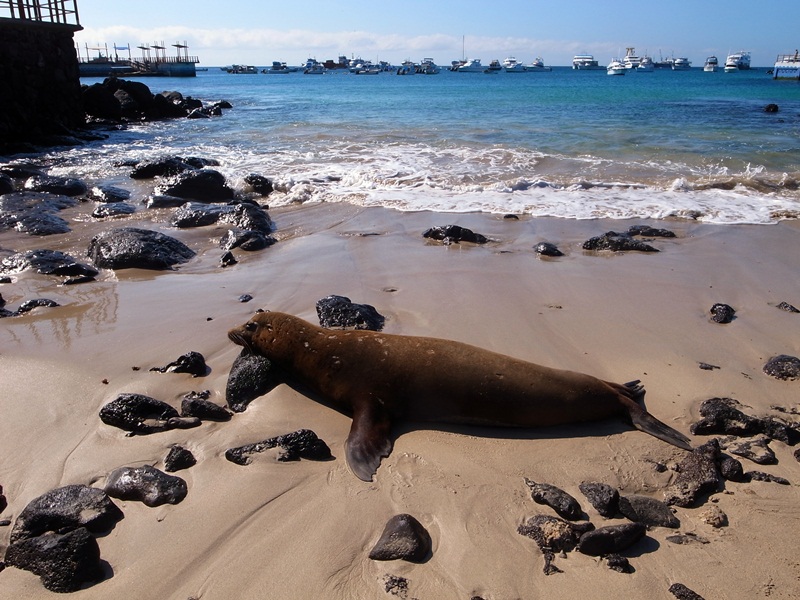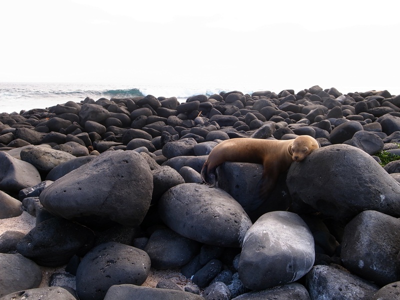 12月7日 – 早晨八點多的飛機經Guayaquil到San Cristobal,看了其他剛去的旅客遊記介紹了一家30USD的旅館有廚房,幸運的還有一間房間,這就可以省卻晚餐的費用。走路到了Interpretation Centre,沿途在碼頭的沙灘Playa Mann上已經可以看到很多海獅,Sally蟹,Figarate鳥。沿著後面的山路走了一圈,到了一個觀光台Cerro Las Tijeretas,一個可以Snorkel的灣,同另外一個更加大的沙灘Playa Punta Carola,遇到兩男海獅爭一女的場面。
