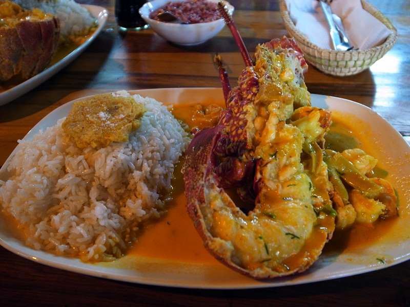 在Galapagos吃飯有點貴,尤其是在Santa Cruz近海邊的餐廳。向入走過三條街會發要有一條有不少大排檔的街,比較便宜但也十分好吃,龍蝦很化算。