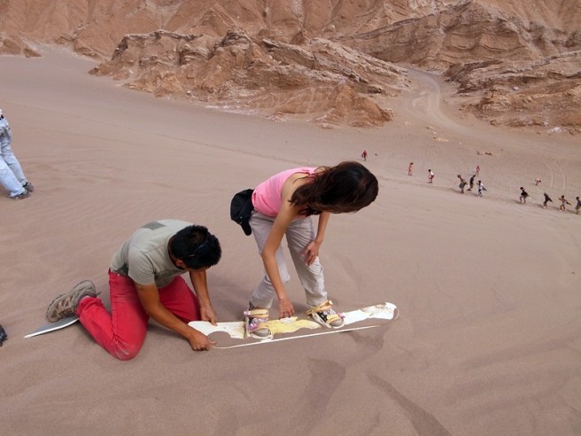 Santiago住在朋友家,55USD(Atacama)37USD(Valpariso)住(雙人房),35USD食和10USD車費。參加了48USD的Atacama Sandboarding團。