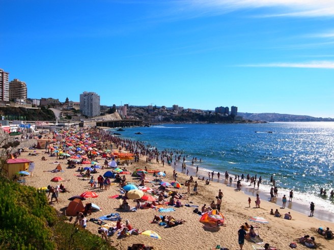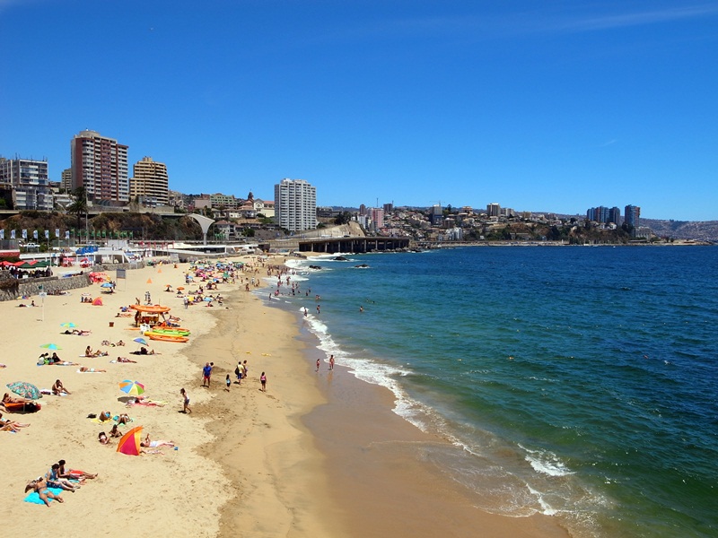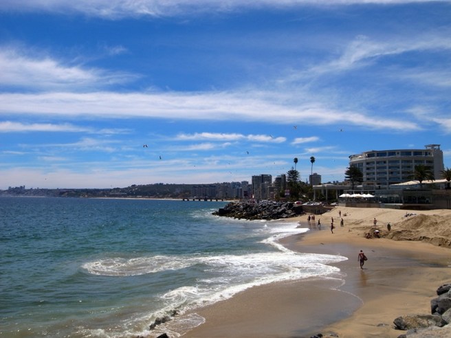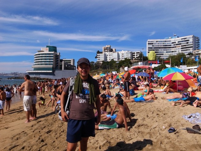 1月30日 – 今天坐地鐵十五分鐘到了Vina del Mar,Mar就是海的西班牙文,所以這裡也是陽光與海灘。這裡跟Valpariso很不一樣,一看就是個高尚住宅區,早知就睡在這邊。