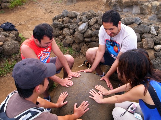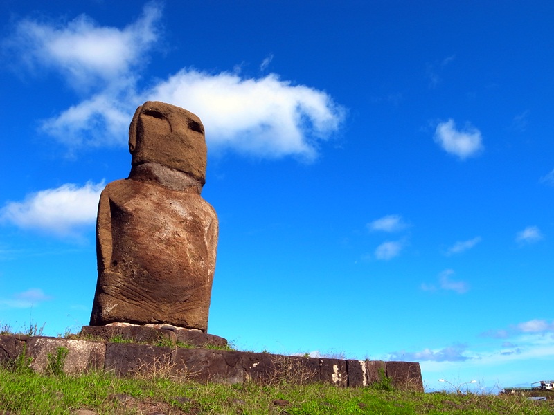 這個是唯一的一個跪在地上的Moai,是日本人新建成的嗎?