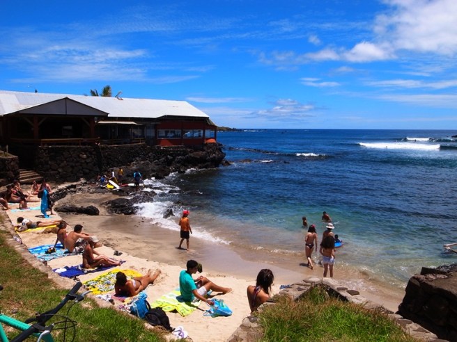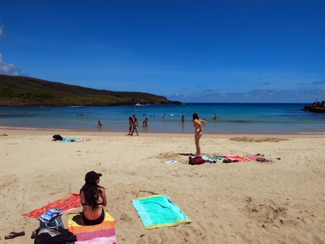 看完比賽,我們也去練練水,練練肌肉,再次回到了Anakena beach