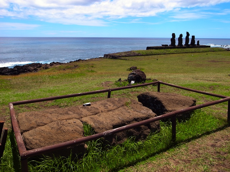 雖這個古跡的Moai都倒塌了,不過在地上能清楚看到半完整的Moai和帽