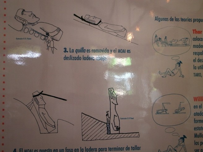 來到旅客中心,有很多關於復活節島,人和Moai的資料。這是關於幾種把Moai搬到目的地的方法