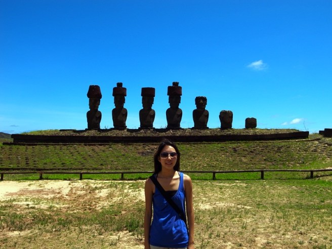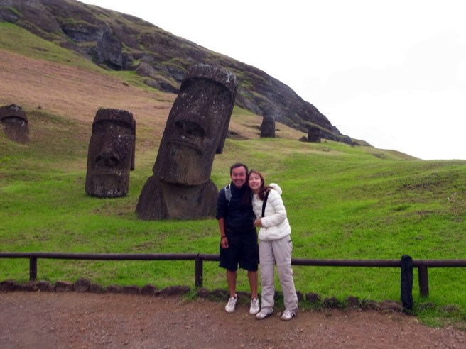 跟同行的智利人來張合照,也跟Moai群來一張