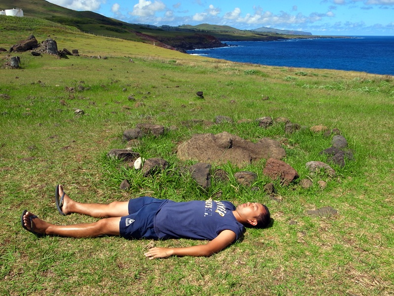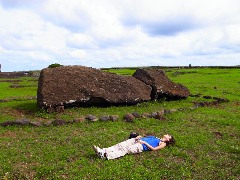 這個Moai應該是在運送途中比遺棄在這裡的,而這個女應該是走得太累隨地就睡的