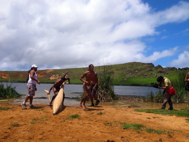 下午去了Rano Raraku看復活節島慶典的比賽,是一個像三項鐵人的比賽,這是整個慶典的其中一個活動,整個慶典會慶祝差不多三個星期