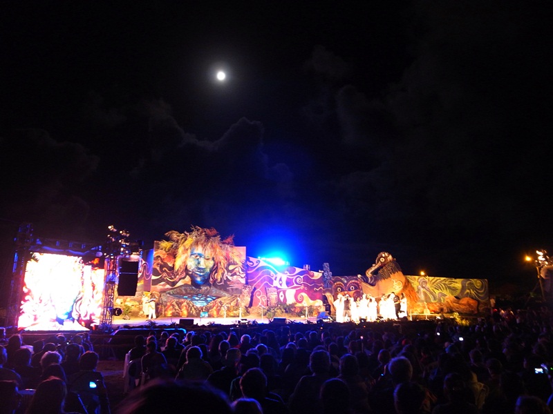 晚上去了看表演晚會,今天的表演是唱歌比賽。整個慶典把全島人分成兩隊,除了今天的三項鐵人,今晚的歌唱比賽外,還有游泳比賽,團體歌舞比賽等等等等