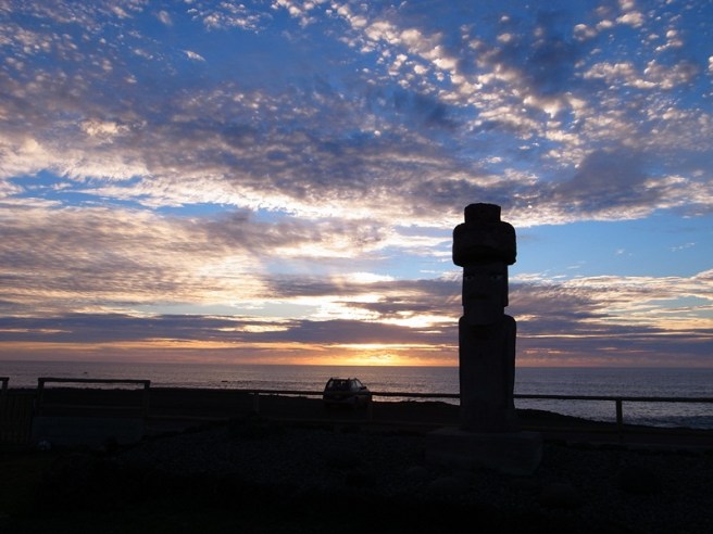 2月4日 – 十一時多出發,先去島另一面的沙灘,其實島不是很大,一個小時的車程就可以從一邊到另一邊。這個沙灘很不錯,聽說跟夏威夷的差不多。吃過中午飯後就再次出發,今次智利人有一個在當地做水軍的朋友也會跟我們同行,充當我們的導遊。去了島北面的數個景點直至黃昏日落才會去