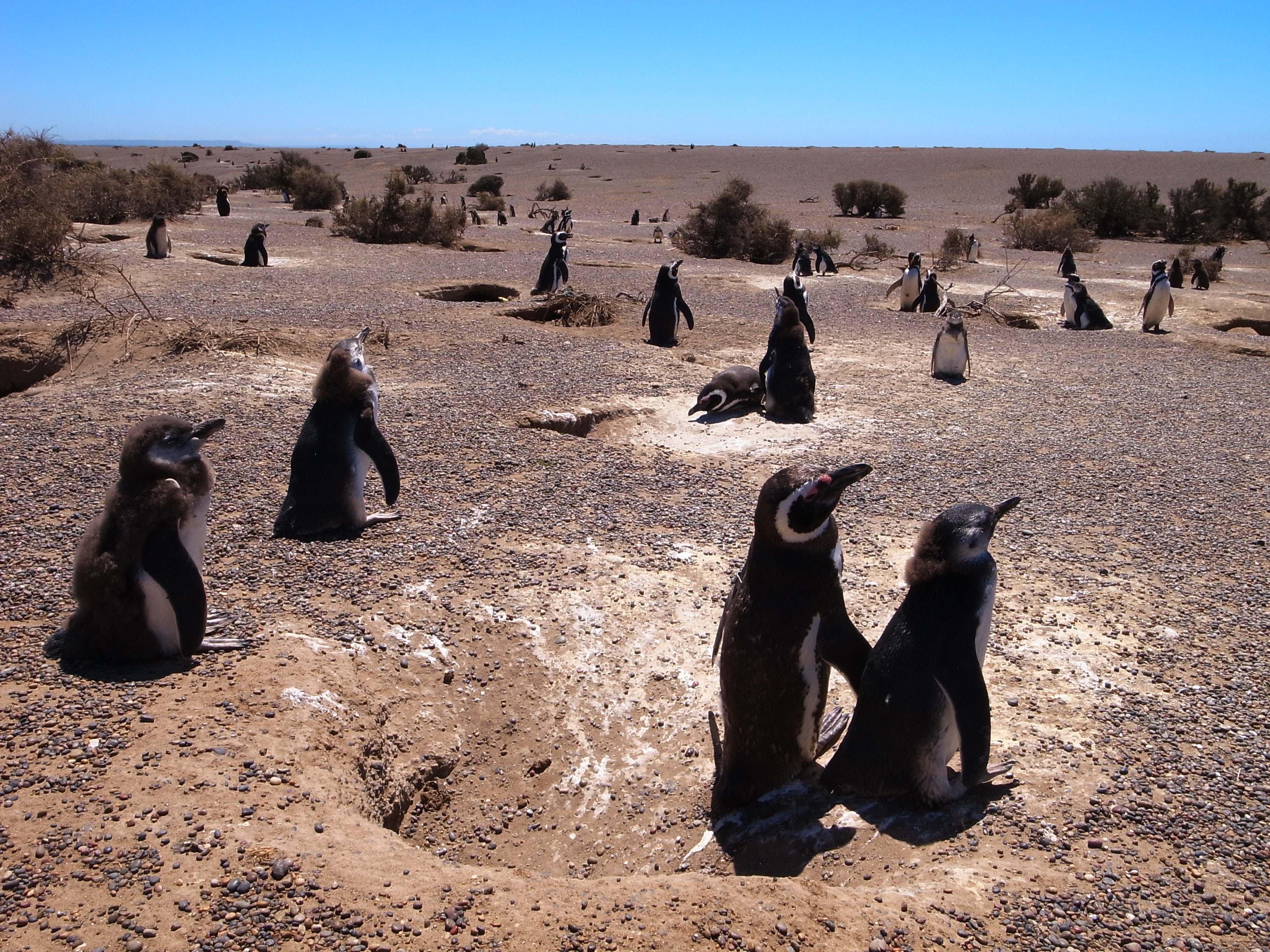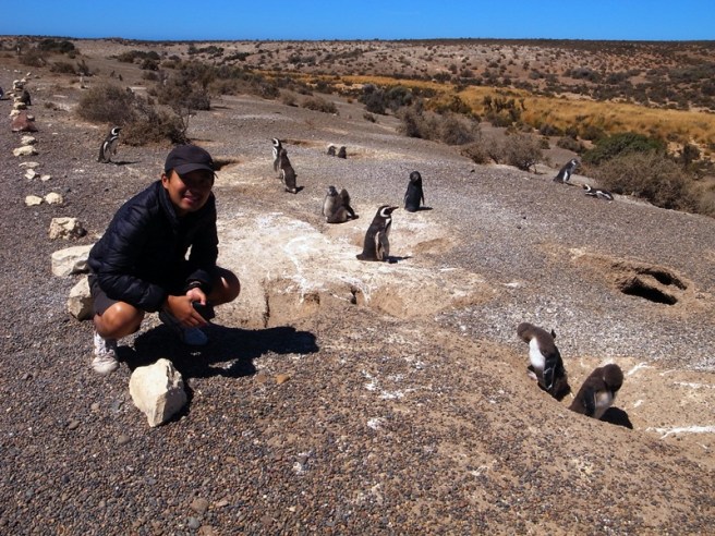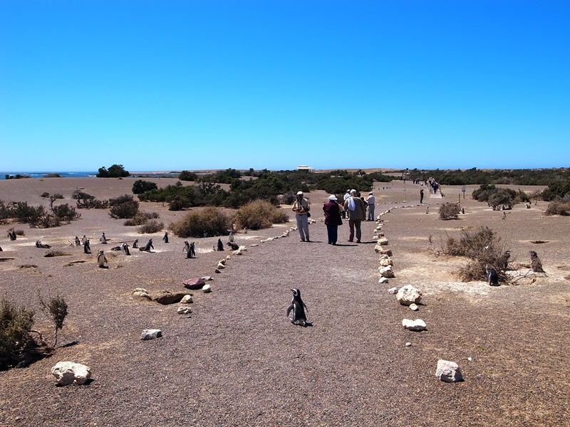 1月25日 – 生日天這樣辛苦坐過夜巴士也是為了去Trelew旁的Punta Tombo,這裡有超過八十萬隻Magellan企鵝,每逄一二月份都會回歸陸地,換毛,生蛋等。這個地方有一條遊客徑,不能四處走,不過企鵝們都不怕人,有些更走過這條路讓大家可以超近距離去看牠們。參觀完企鵝,就坐一小時的車到附近的Puerto Madryn,這個海邊小鎮有個不錯的沙灘,也是旅客們到Peninsula Valdes的聚腳地,可惜一月看不到鯨魚,所以我們也沒有參加團。