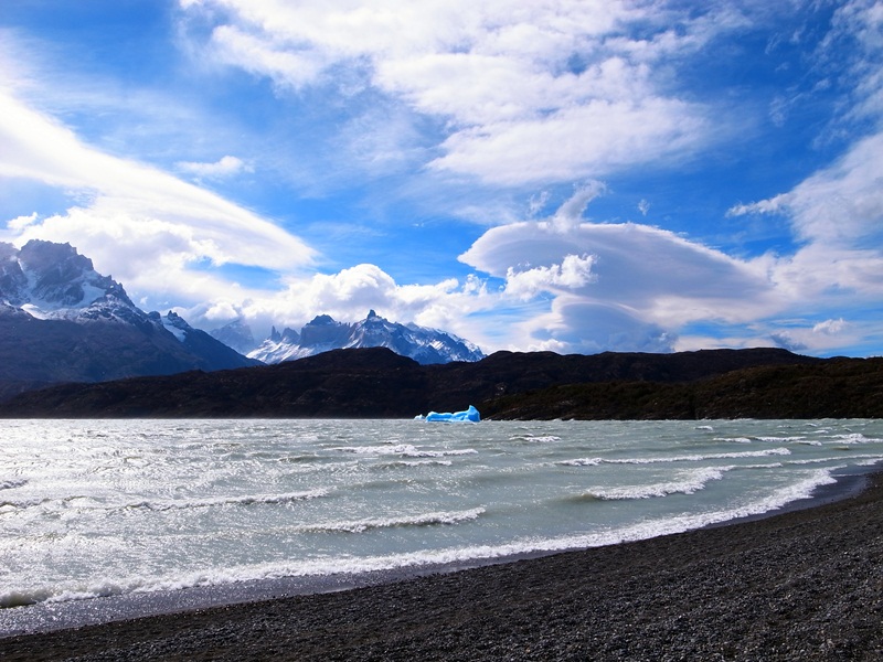 3月6日 – 參加了到TdP國家公園的團,早上七時半就出發了。果然名不虛傳,風景很美,風也超大,真的可以把人吹起。看了生平第一次看的冰山一角,很藍。告別智利當然要再吃這裡的海鮮,尤其是長腳蟹和鮑魚,價廉物美。