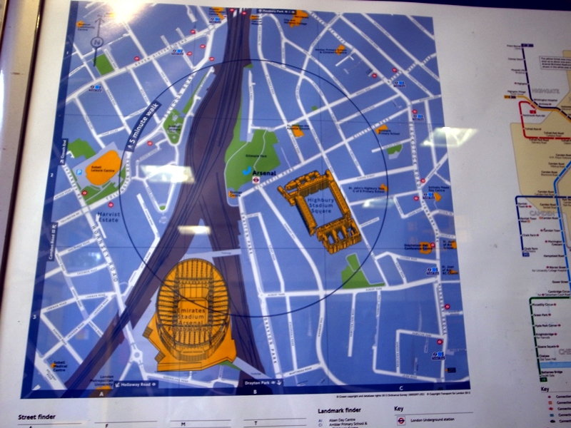 最近的地鐵站underground station:Arsenal (Piccadilly Line) 出站後再多走三分鐘