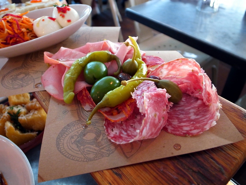 開胃小食之一,有三種不同的火腿,兩種橄欖,還有辣椒和很大粒的caper berries,caper berries通常都是加在煙三文魚上
