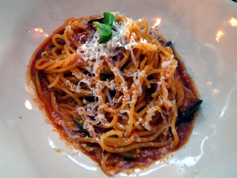 還有Spaghetti alla Norma,是西西里的傳統意粉。意粉是新鮮人手差出來的,很有口感,吃下口可以吃得出蕃茄醬的鮮味