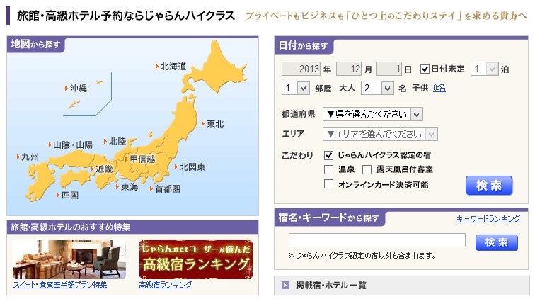 網上已經有不少Jalan訂房教學 (e.g. http://lecia323.blogspot.hk/2013/02/jalan.html),所以不在這裡詳談入會和訂房步驟。在這裡我想討論一下怎樣利用Jalan上的功能去更輕易找到符合要求的旅館。