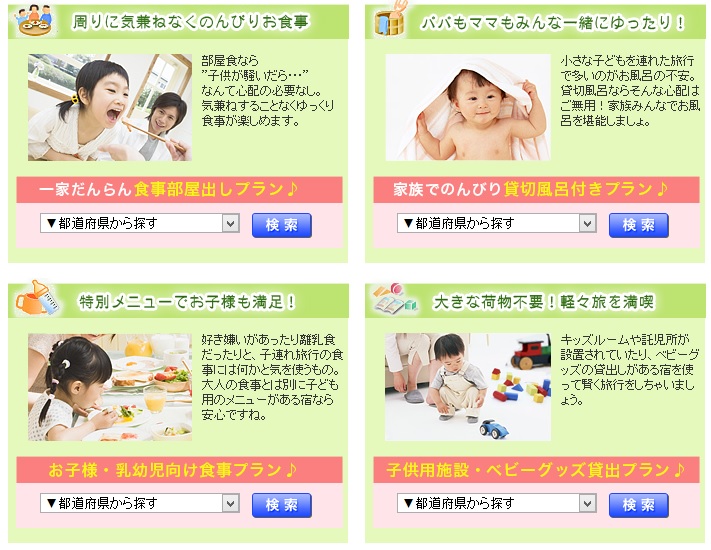 先前提到的第三個方法是透過特集,其中一個特集是"子供連れ",亦即是親子旅行。