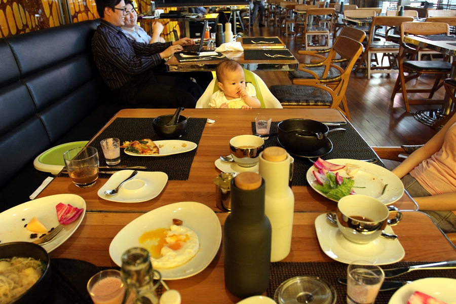 我的早餐呢? 這裡的早餐超贊。款色多而且食物新鮮好吃。還有白粥和乳酪給霖霖吃。
