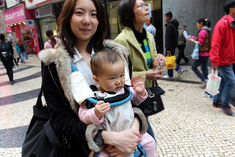 在等酒店車到氹仔官也街,霖霖好像還沒有睡醒的樣子。