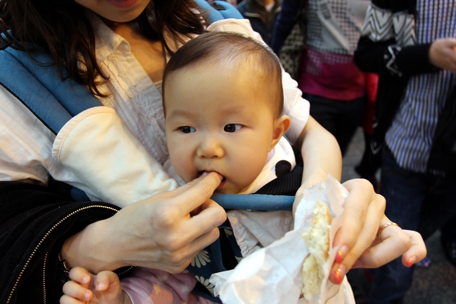 肚子餓就給她吃豬扒包的包,葡撻的蛋,我們也快快吃過晚飯讓她回酒店吃飯。