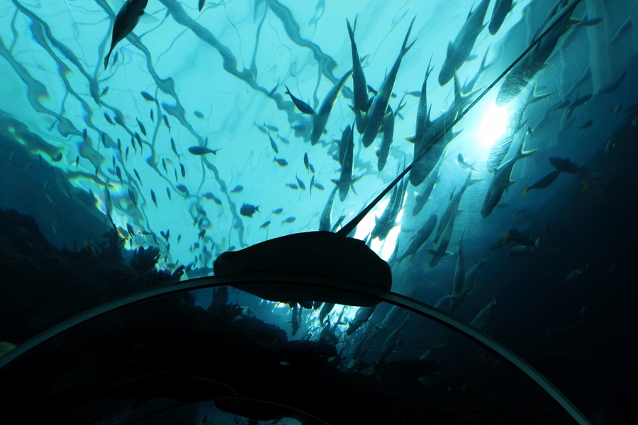 其後又由另外一個超大型的水族箱。能清楚地看到魚群的集體游動。