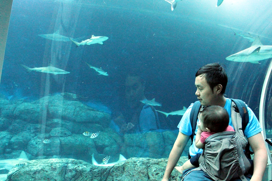 今次去聖淘沙海洋館,霖霖沒有睡著,不知道是不是她覺得看著魚兒游來游去很有趣。一歲大的BB對著海洋生物究竟會有甚麼反應?