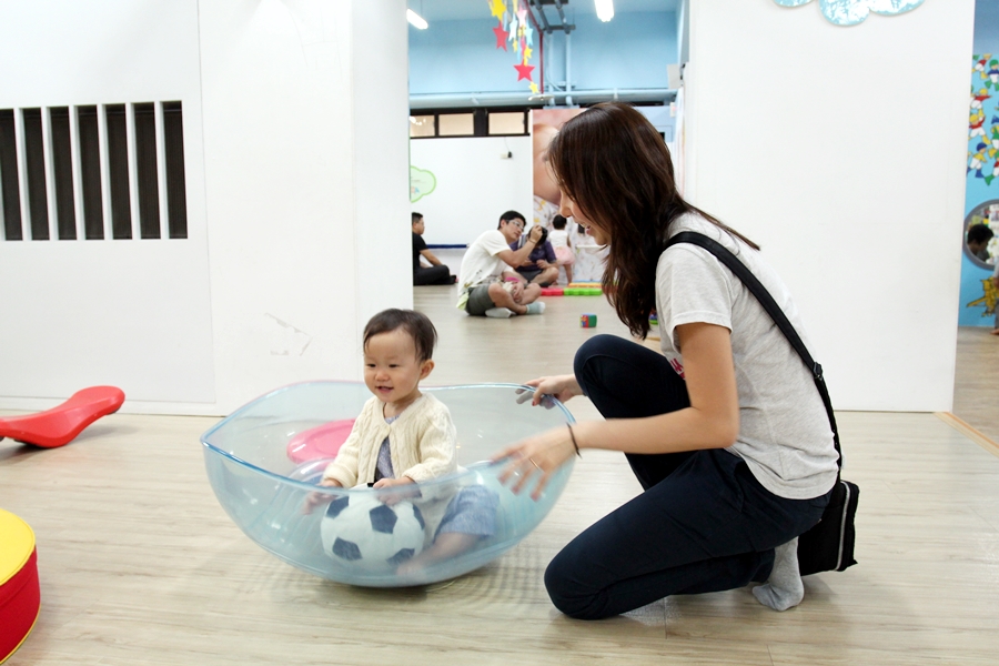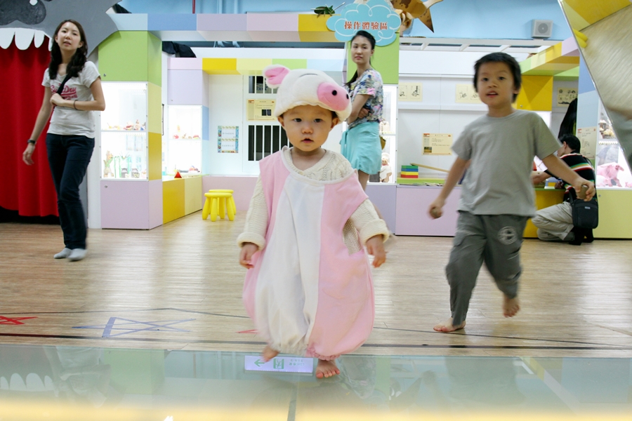 有一區為兩歲以下區,主要訓練活動能力,有一區給較大的小孩,比較多腦力活動。
