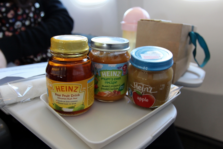 國泰提供的嬰兒膳食包括一瓶果汁和兩瓶食物泥。