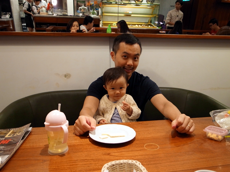 不肯自已乖乖坐著,一定要我們跟她分享食物。