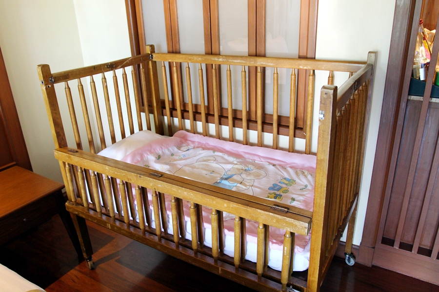 雖有BB床,但這張BB床應該不能把霖霖安全地困在裡面,她很輕易就能爬出來