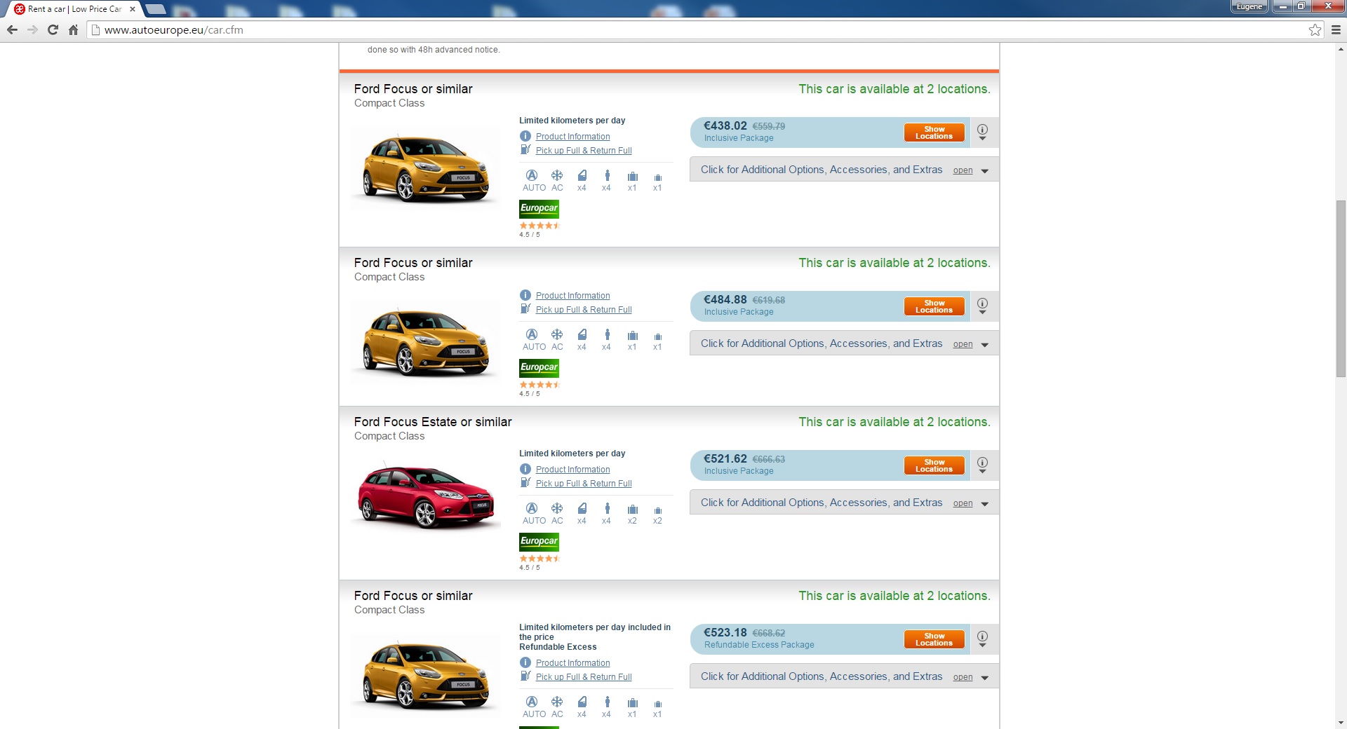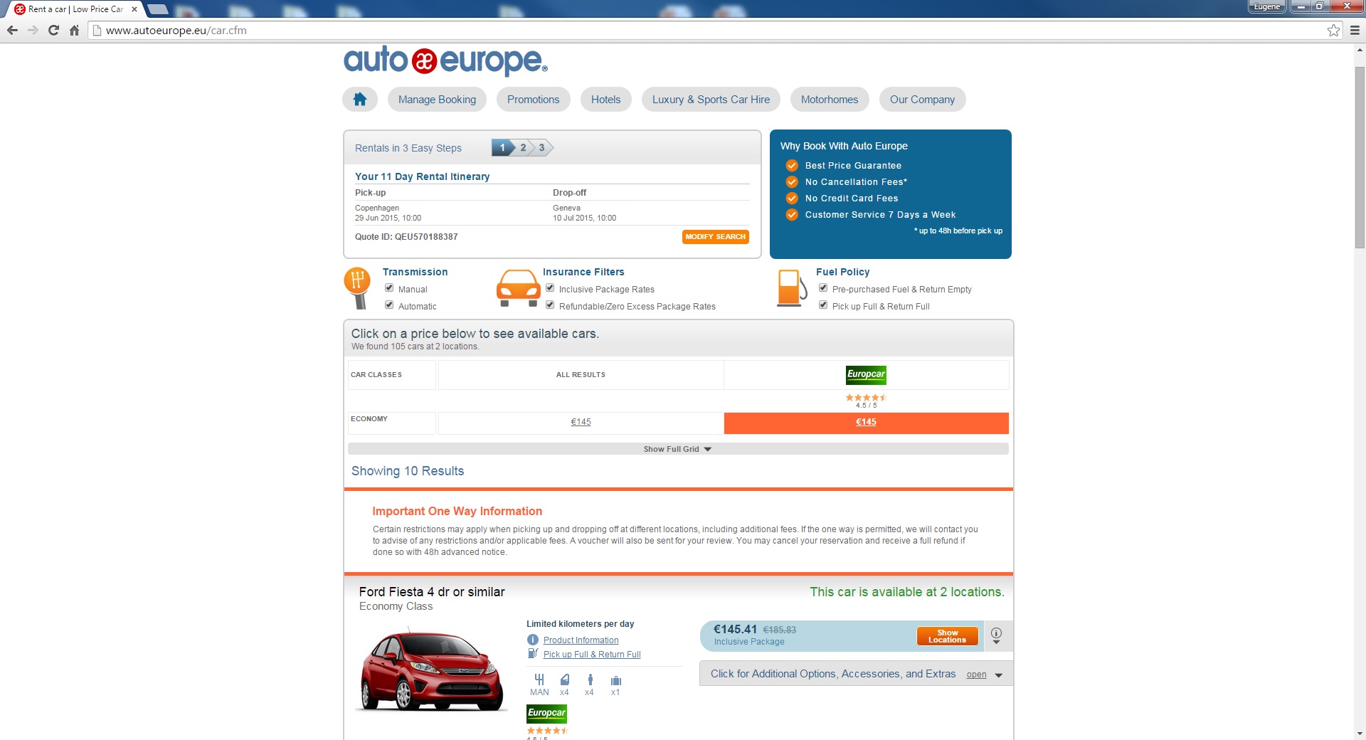 之後就直接到Europcar去訂車,因為這裡會直接顯示異地租車的附加費。