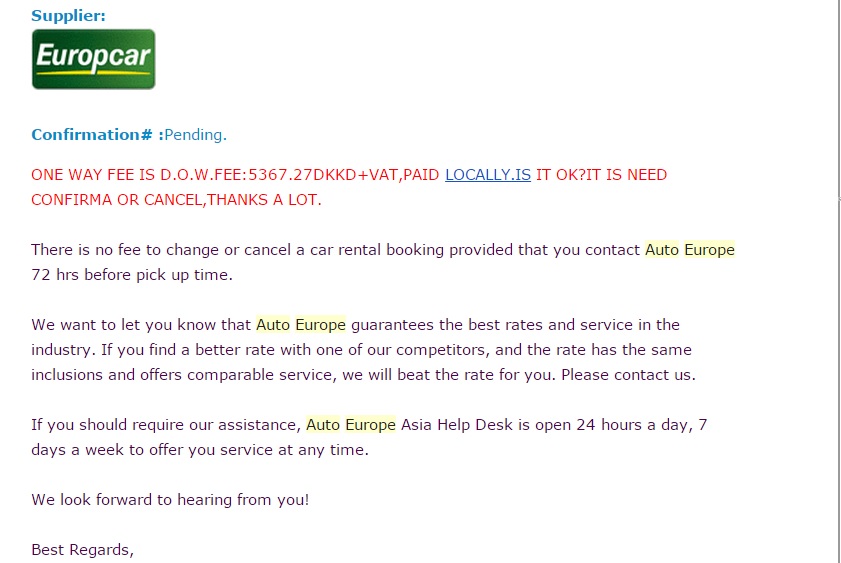 最後經auto europe訂了Europcar的車,以為這就完成了,