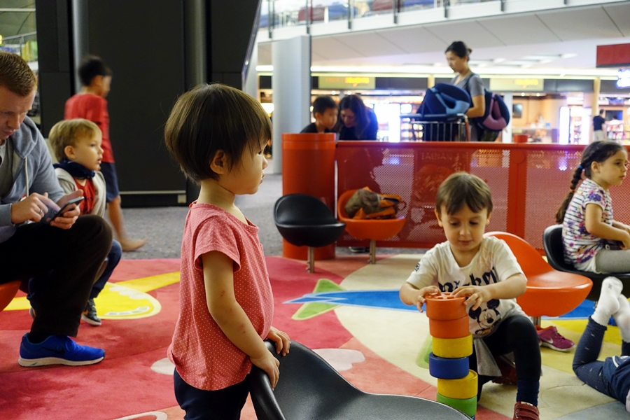 來到登機口,剛好有個小遊樂區在旁邊,我們就讓她在那裏走來走去。