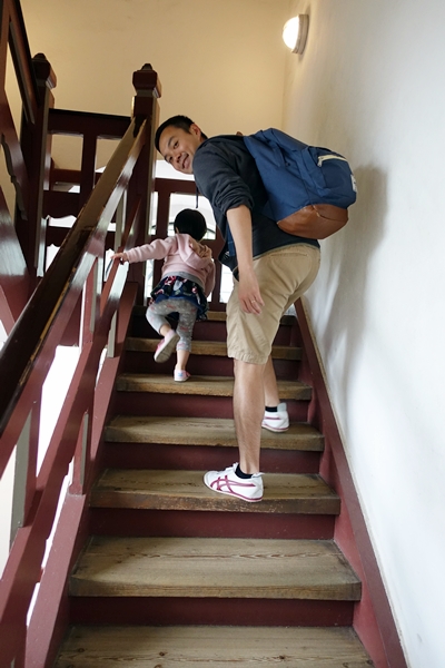 大約走400級樓梯才到頂,霖霖走了300多級,直至到有些地方很窄我就抱著她上去。