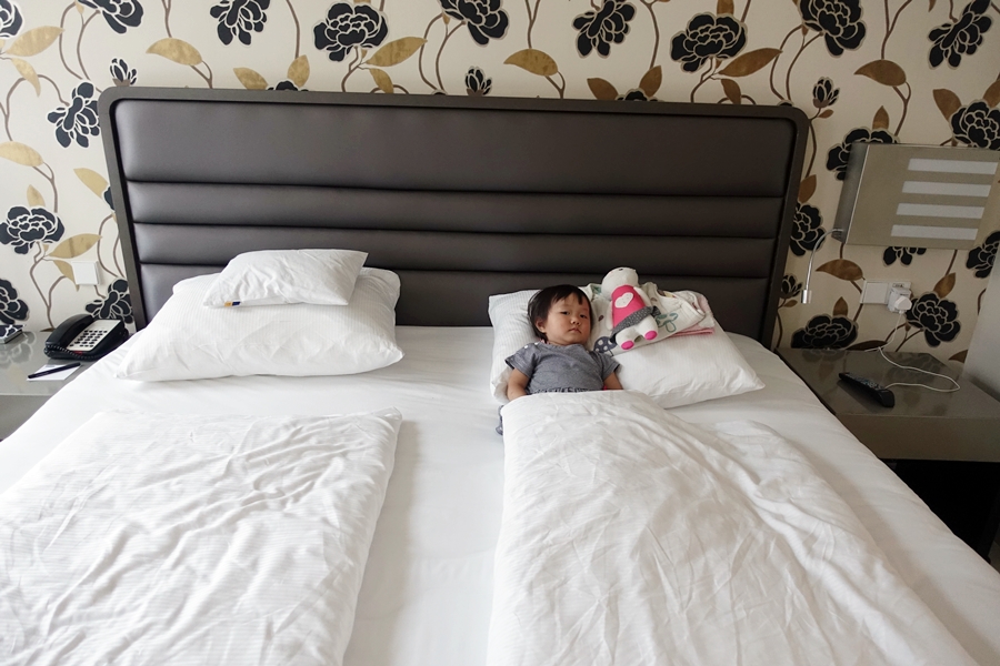這家酒店有浴缸,可以放水讓霖霖洗澡,不用再哭了。