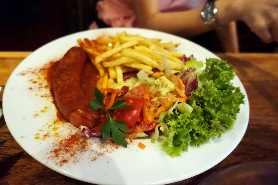 Currywurst,和每餐都配上大杯啤酒,每次也要抱著肚子回家。