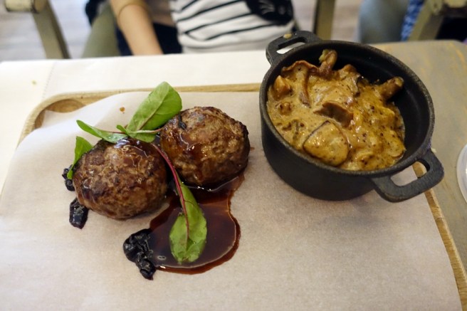主菜之一有北歐鹿肉肉丸配蘑菇蔬菜。鹿肉味道很香。