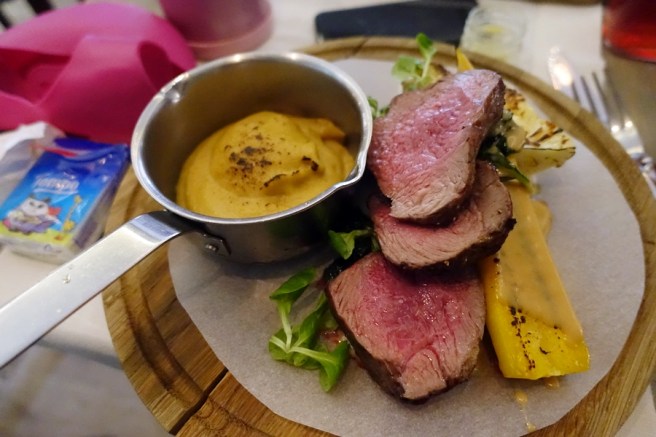 另一邊是羊扒,烤蔬菜和南瓜薯蓉。
