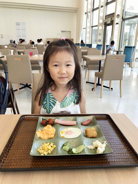 小朋友來到日本都變得胃口大開。酒店有自助早餐九宮格,用餐地方可望到外面洒店泳池的景色。